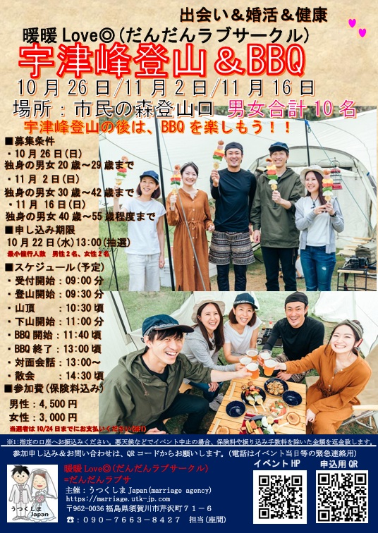 運動の秋、食欲の秋という事で、うつくしまJapanでは、2025年10月26日、11月2日および、11月16日に、宇津峰登山&BBQを行います。